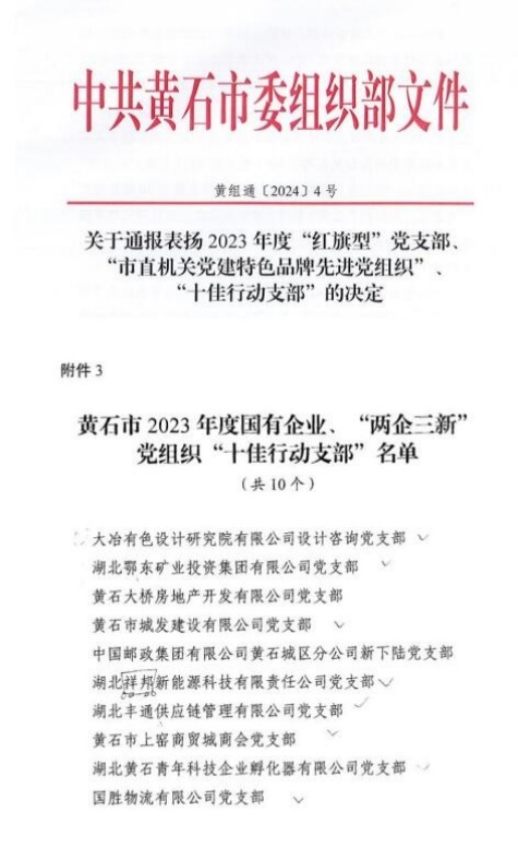 【喜報】喜訊!城發(fā)建工集團城發(fā)建設(shè)公司黨支部獲評2023年度黃石市國有企業(yè) “十佳行動支部”