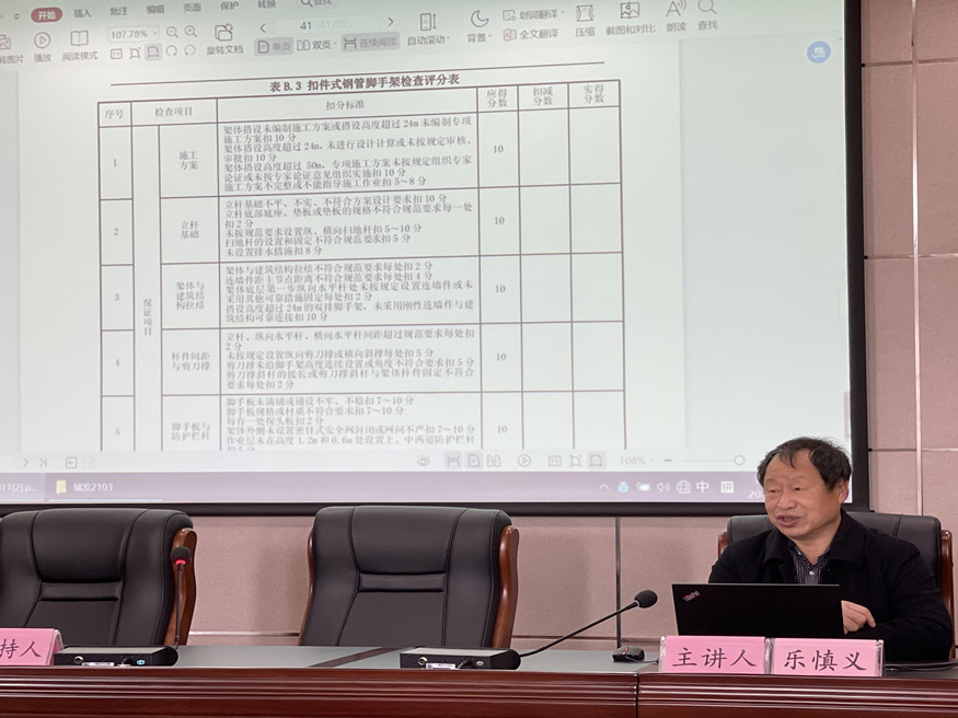 培訓(xùn)結(jié)合建筑施工安全生產(chǎn)標(biāo)準(zhǔn),重點(diǎn)介紹了腳手架和施工用電等安全管理知識。從腳手架施工方案、立桿基礎(chǔ)、架體與建筑結(jié)構(gòu)拉結(jié)、桿件間距與剪力撐、腳手板與防護(hù)欄、配電箱“三級配電、逐級保護(hù)”等安全生產(chǎn)檢查容易忽視的內(nèi)容為切入點(diǎn),深入淺出地結(jié)合案例分析,培訓(xùn)內(nèi)容干貨滿滿,受益匪淺。